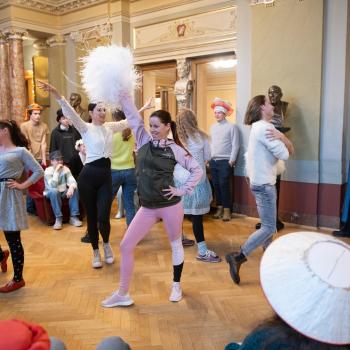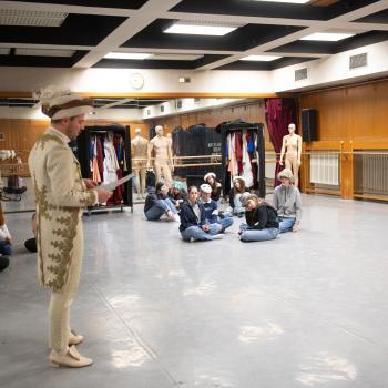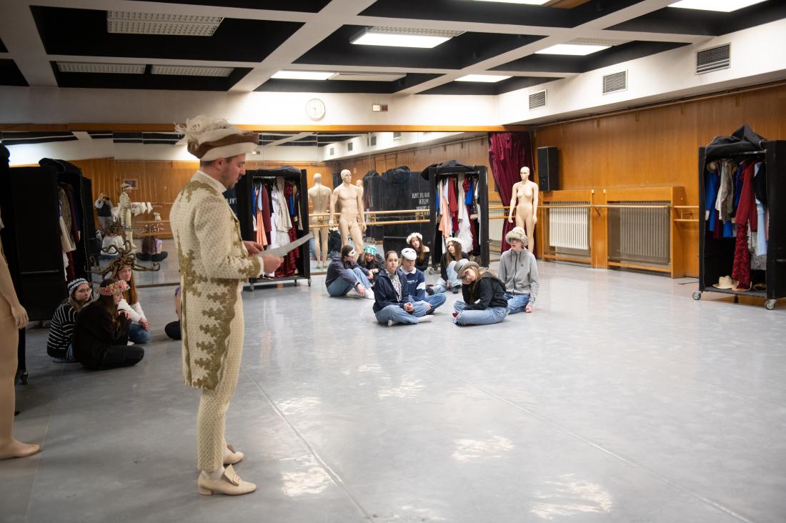 I Velké divadlo skýtá nejrůznější technologické výzvy a zaměstnává celou řadu odborníků. Jsme rádi, že jsme dětem mohli ukázat, co všechno je potřeba ovládat, aby se mohlo odehrát takové jedno divadelní představení. Stanovištěm jevištních technologií nás opět provázel soubor Baletu DJKT. Taneční ukázka v podání Novelly Petrucci a Giacoma Mori se tentokrát nesla v duchu připravované moderní taneční inscenace Německé requiem.