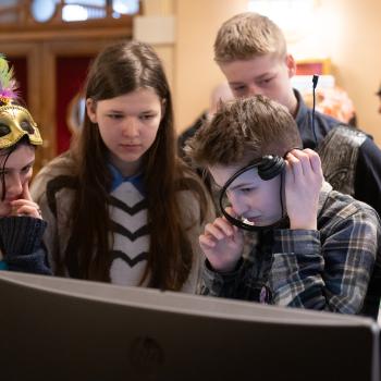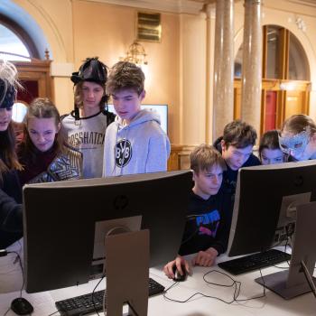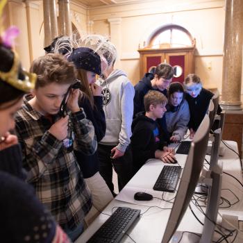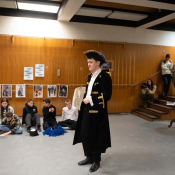 Multimédia do divadla patří! Kam a hlavně jak se tam dostanou? O tom si třídy povídaly s Apolenou Veldovou z Činohry DJKT a jejím hostem Ondřejem Brýnou. Ondra je neuvěřitelně talentovaný umělec, a pro naše divadlo už nějaký ten pátek tvoří fantastické animace do inscenací všech žánrů. Díky tomu mohl dětem ukázat svou tvorbu a popsat jim, jak taková multimédia pro divadlo vznikají. Inspirativní a kreativní stanoviště, kde si žáci v rámci soutěže vyzkoušeli dabing, bylo především hodně humorné.