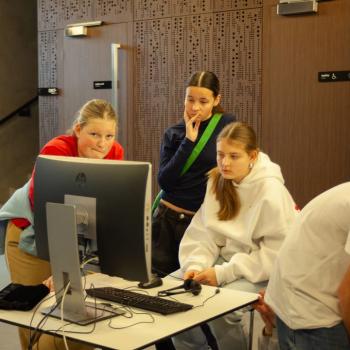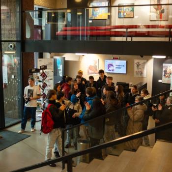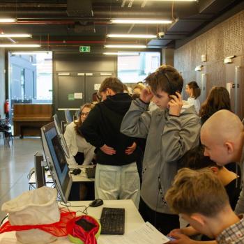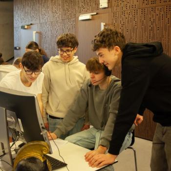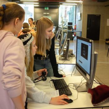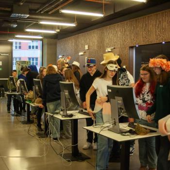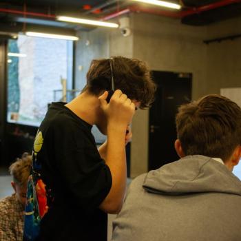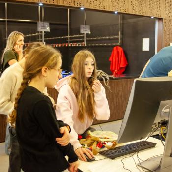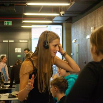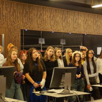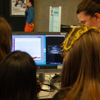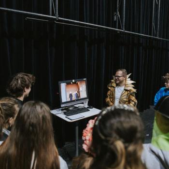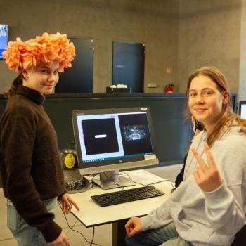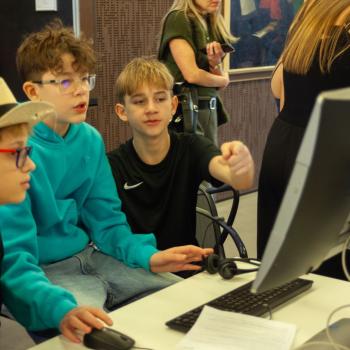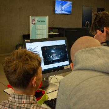 Jazyk, hlas, intonace – to všechno neodmyslitelně patří k činohře. A disciplínou, která všechny tyto složky propojuje, je dabing, který si žáci zkouší na stanovišti nazvaném multimédia. Jejich úloha je přitom o to těžší, že si zároveň vymýšlí vlastní scénář a určují si postavy, kterým své hlasivky propůjčují. Z němé ukázky – situace z inscenace Maškaráda – se tak stává pokaždé trochu jiný příběh. Do problematiky multimédií a jejich vztahu k divadlu uvedla žáky herečka Veronika Pichlerová. Milým a odborným kolegou jí přitom byl Eduard Novotný z FDULS.