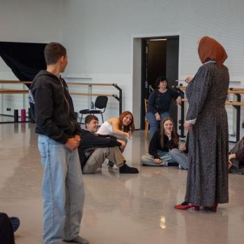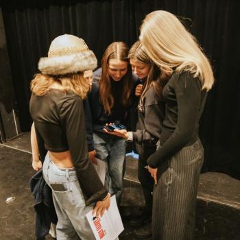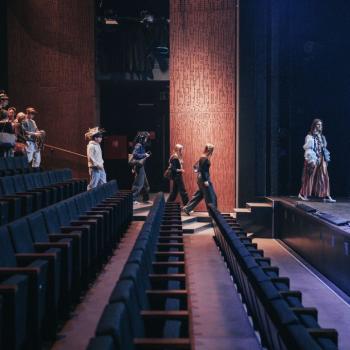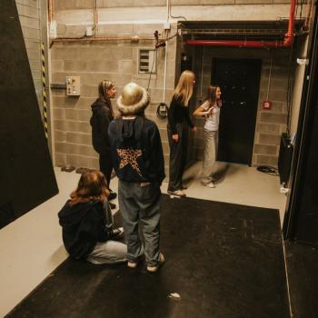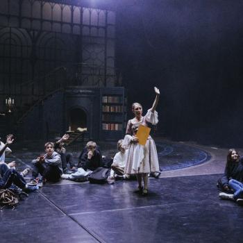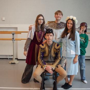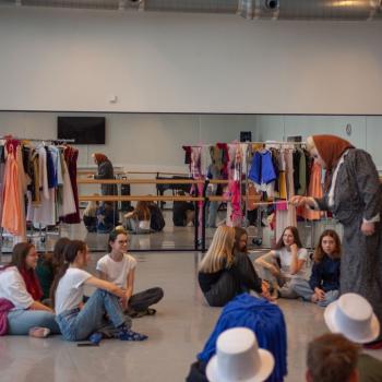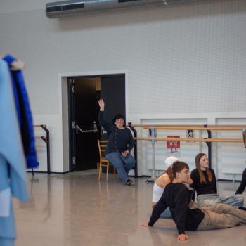Kristýna Miškolciová zastává v DJKT mnoho úloh. Kromě toho, že je baletní mistryní a sama také tančí v několika představeních, má na starosti práci inspicientky – a díky tomu je v zákulisí jeviště Nové scény jako doma. Spolu se svými kolegy představila dětem jevištní techniku i zajímavosti zpoza jevištních portálů. Tanečníci baletu DJKT Luisa Isenring a Simone Carosso se z hlubin jeviště vynořili se svou ukázkou z inscenace Německé requiem. Hned v zápětí si vzali do ruky bodovací kartičky a oceňovali kreativitu žáků při tvorbě scény do Labutího jezera.